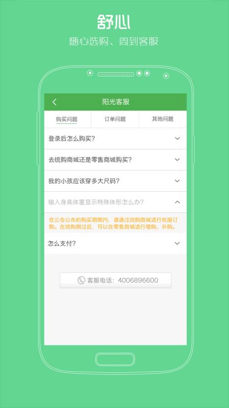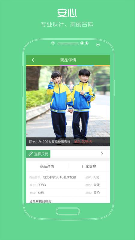 2、快捷方便:买个校服要记着报名?记着交钱?NO,使用阳光智园随时随地订购。点一点,坐等校服送到手;