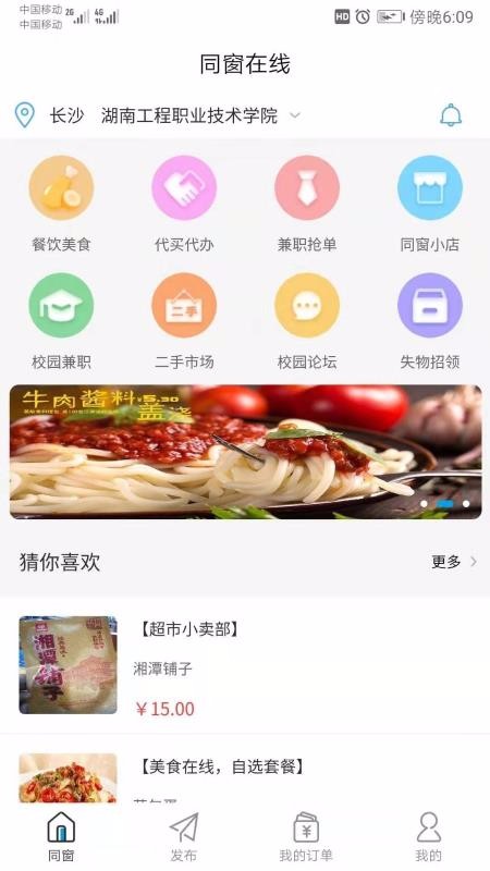 同窗在线是一款高校校园服务软件,集校园生活和校园服务为一体的综合性校园软件。平台的功能非常多,包含有校园餐饮、校园代办、校园二手市场和校园失物招领等功能;学生直接在平台上售卖自己购买以后没有怎么用的商品,进行二手交易,通过售卖自己的闲置物品,赚取生活费;可以在平台上寻找兼职,让自己的课余时间不再无聊,可以做兼职工作,自己赚取生活费,达到经济独立;为学生提供各类餐饮服务,学生通过在线购买自己需要的食物,可以在寝室里等着送餐员将食物送上门。