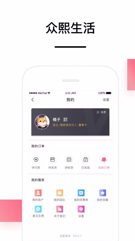 众熙生活圈app是一个全球性、多产业化、互联网 + 金融投资的营销性超级平台,集众多生活服务于一体,这里聚集了大量优秀的顶尖行业人才 : 有国内知名的直复营销行业的领袖;有成功推动数家企业成功上市的金融翘楚、资本运营专家;在衣食住行、吃喝玩乐等各方面的服务项目都有,让用户感受到更加贴心的优质服务;如线上点餐咖啡的服务,直接在线上预订喜欢的咖啡,可以直观的查看咖啡店的地理位置,查看咖啡店提供的各品类咖啡,清晰透明的价格,一键下单点餐,线下取货;软件提供给用户衣食住行,吃喝玩乐上面的各种提供的帮助,让用户感受到软件的强大功能与贴心服务,有喜欢的就赶紧来下载这款软件吧。