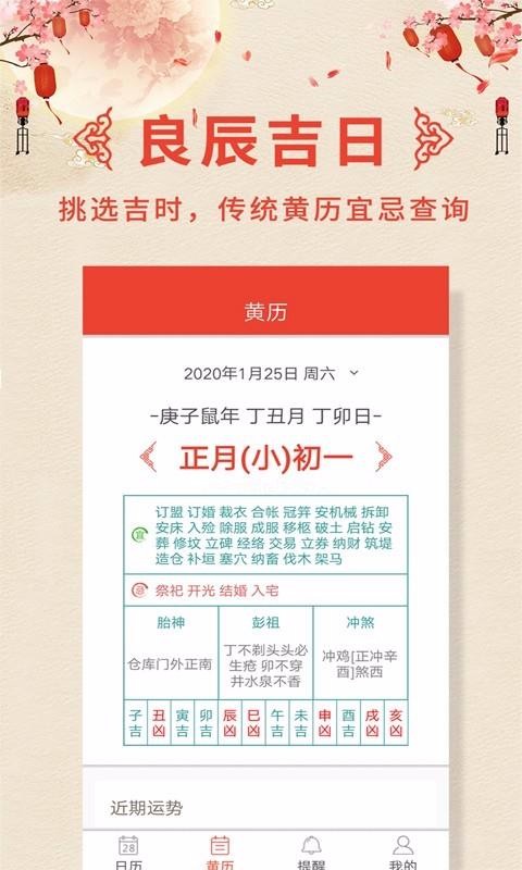 4、黄历查询:点击就能查看今天是的益处理的生活大事是哪些,便于用户提前做好准备;