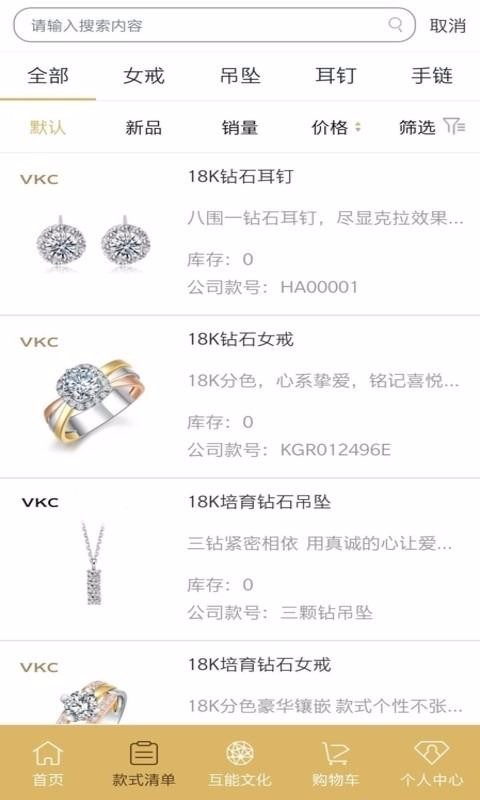 3、钻石产品的款式丰富多样,能够直接根据款式的不同进行分类检索,缩小查找范围;
