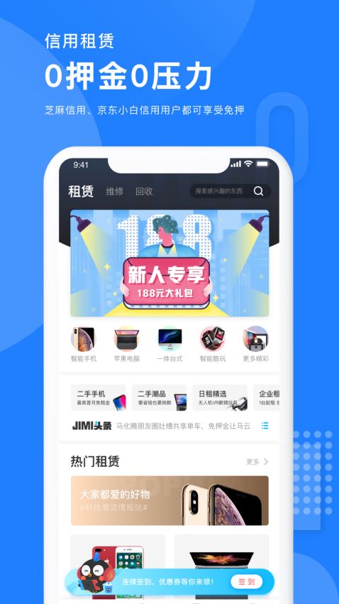 信用租赁,只要你的芝麻积分;0押金租赁,只要积分超过600;