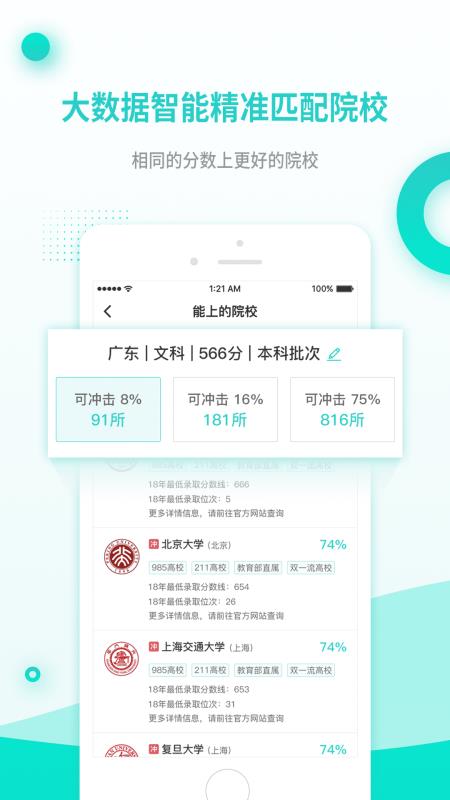 1、大数据为您智能精准匹配院校,相同的分数可以上更好的院校;