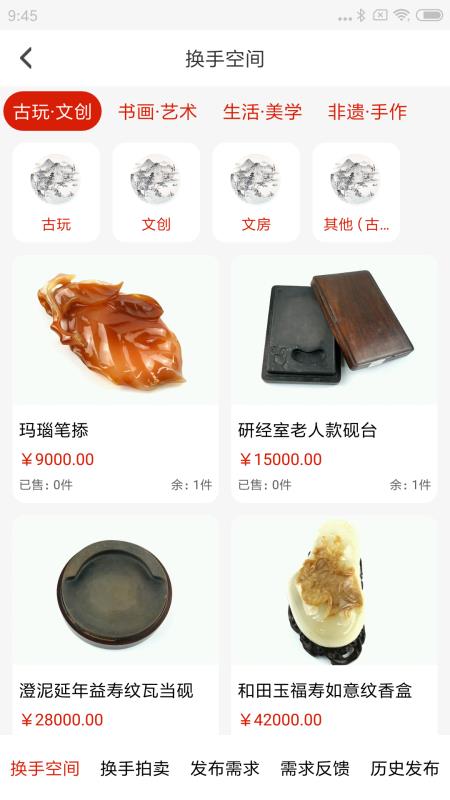 换手:支持线上购买文物或参与拍卖,可以随时发布需求信息;