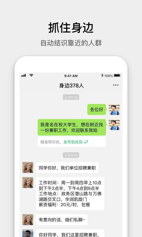2、精准匹配,根据你的位置而精准的匹配到附近的人、会议、活动;