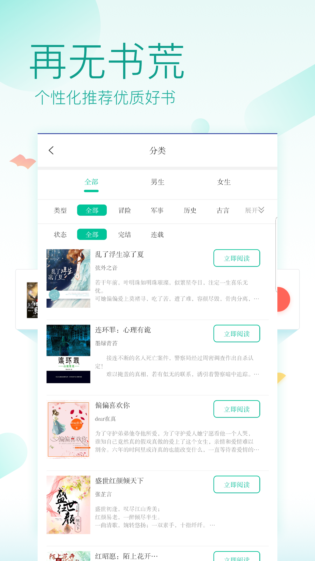 2、超多不同的小说类型可以实时在线阅读,更好的享受在线阅读精彩小说的特色;