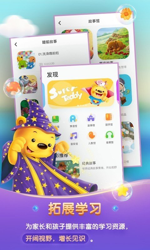 2.家长可以使用app为孩子讲各种睡前故事,孩子就能安心入睡了;