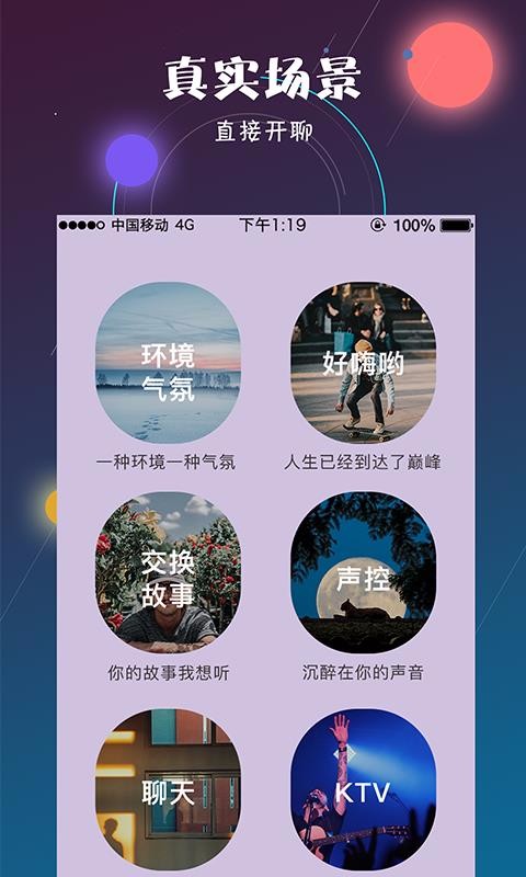在这里,你不需要上传自己的照片,不需要公布自己的身份职业,抛去所有外在的东西,在星球中为你匹配一个与你灵魂契合的有缘人。用声音交朋友,在这里你可以与陌生人畅谈理想、生活,也可以彼此分享一些自己的经历趣事。基于自己的心灵交到与自己有相同兴趣爱好的朋友。一起来了解到了相当不同的交友的过程,让大家欢乐的去交友。各种模式应有尽有,也都是匿名参与的,互动性质也是很高的。