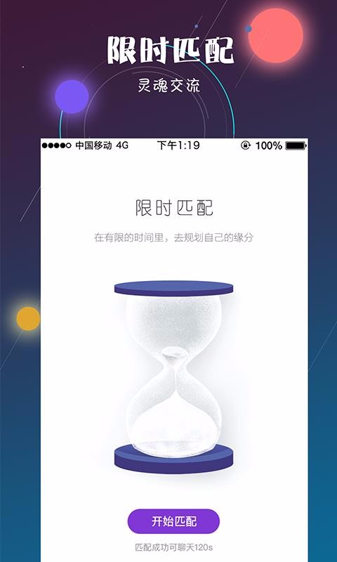 系统随机匹配在线用户,匹配成功可以聊天两分钟;