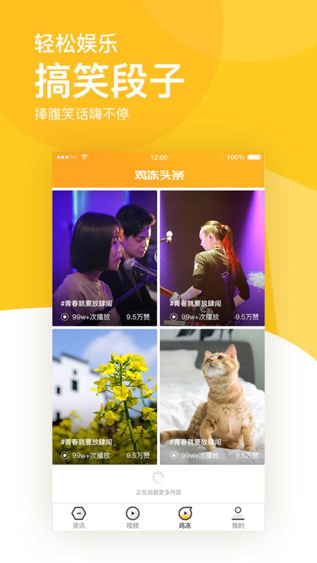 鸡冻头条app是一款是一款非常精彩的手机新闻资讯类阅读软件,平台可以为今天有点衰的你带来一点生活的乐趣,让你每天都可以笑笑,随时散发正能量,这里的资讯非常的丰富,还有各种搞笑的短视频可以浏览,让你每天都有新鲜的内容可以刷新,随时享受自己的生活。你只需要下载就可以感受每天的快乐,转发到朋友圈还可以感受别人的快乐!