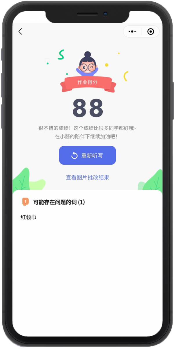 听写作业中,读书酱可以自动语音报听写、自动分析听写作业照片、自动生成分析报告,助力家长在家轻松辅导。