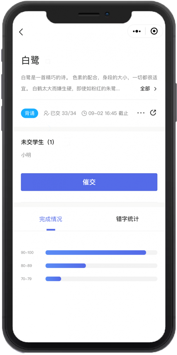 读书酱可以帮助老师督促学生完成朗读作业,即时完成检测,