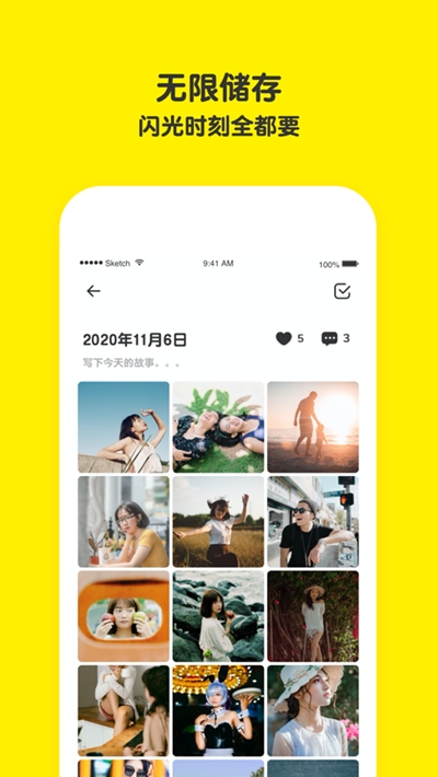 根据不同主题,自由创建各类相册。超便捷邀请趣味相投的朋友或彼此牵挂的家人加入。一人记录,全员共享,全员记录,精彩无限!在共享的相册里,距离不再是问题,时间不再是阻碍,记录各自精彩之时,也共享了彼此都懂的快乐与爱。美好的回忆当然由大家一起创造,幸福的时光里当然有彼此更好。