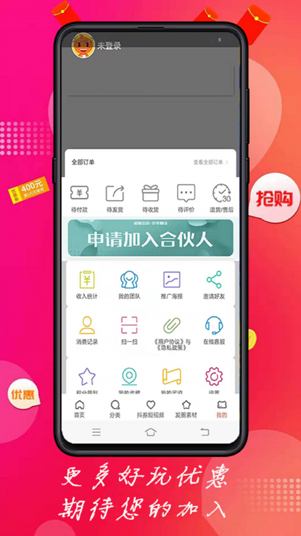 所有商品资源自带优惠券,一键领券购物享受丰厚的折扣优惠;