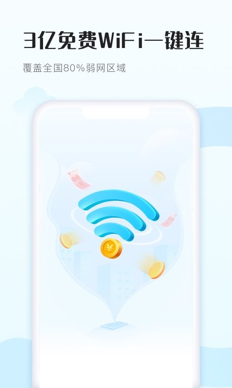 2、免费WiFi一键连,发现您身边的免费WiFi,一键连接上网;
