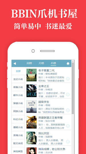 BBIN爪机书屋app可以轻松开始进行阅读,更多丰富的书籍内容,快速可以开始打开书籍软件,给你更多的专属书单,还有很多小说资源提供给你更多优质福利,可以享受不一样的小说阅读,所有的小说阅读过程中没有任何的广告插件。想看什么小说可以直接在搜索栏中查找,强大的搜索功能也能带给你超棒的使用体验,通过爪机书屋手机版随时随地即可免费在线阅读最新的小说和精品图书推荐,爪机书屋手机版拥有全新的界面,完本小说还可以免费下载,爪机书屋手机版每日最快实时为您更新最新章节,爪机书屋app还支持免费离线缓存功能,欢迎来下载体验!