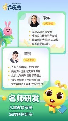 卡乐兔识字app是一款非常优质的儿童学习软件,卡乐兔识字app提供了丰富的学习资源,超多有趣的原创绘本和特色的教学方式寓教于乐,让孩子能快速掌握识字技巧,锻炼记忆力,培养孩子的学习兴趣,提前打下学习的基础,有需要的朋友快来下载吧!还有专业老师在线上为大家进行指导,为了帮助孩子来纠正发音,家长可以在学习的过程中进行陪同,陪伴孩子学习更高效,还能够增进你们之间的亲子关系。