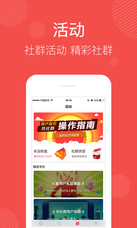 4、社群活动,社群活动是共社群为丰富社群用户使用体验及线上线下交互,而开发的一个板块。