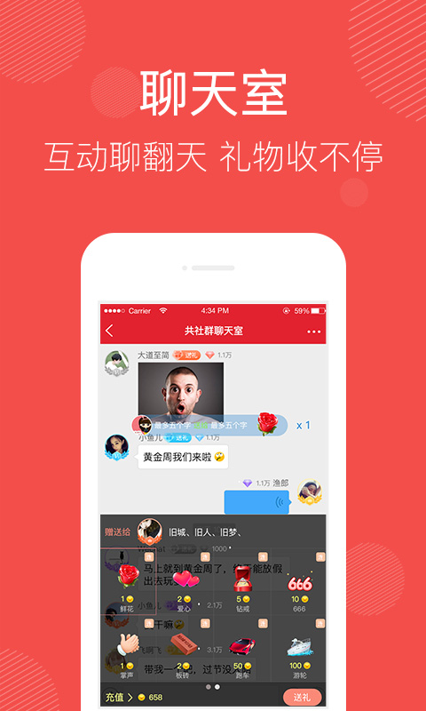 3、同时,直播间的礼物赠送和互动评论系统可以让用户和主播之间,亲密互动;