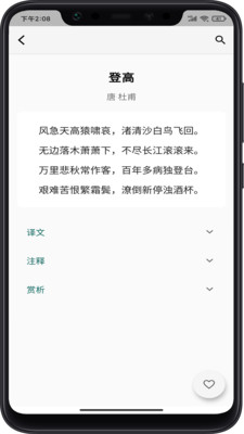 1、一款专门提供古诗词资源的平台,不仅能够背诵课文,还能根据注释和译文学习诗词的含义;