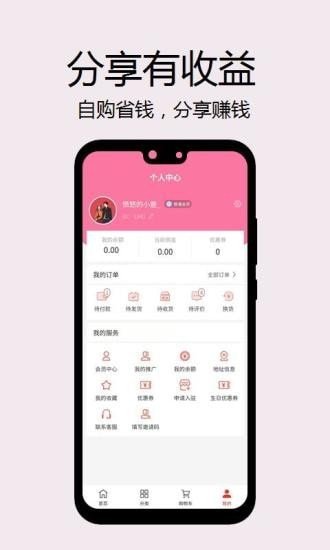1.邀请朋友使用,赚取零用钱,折扣高达95%;省钱时省钱,赚钱时分享。