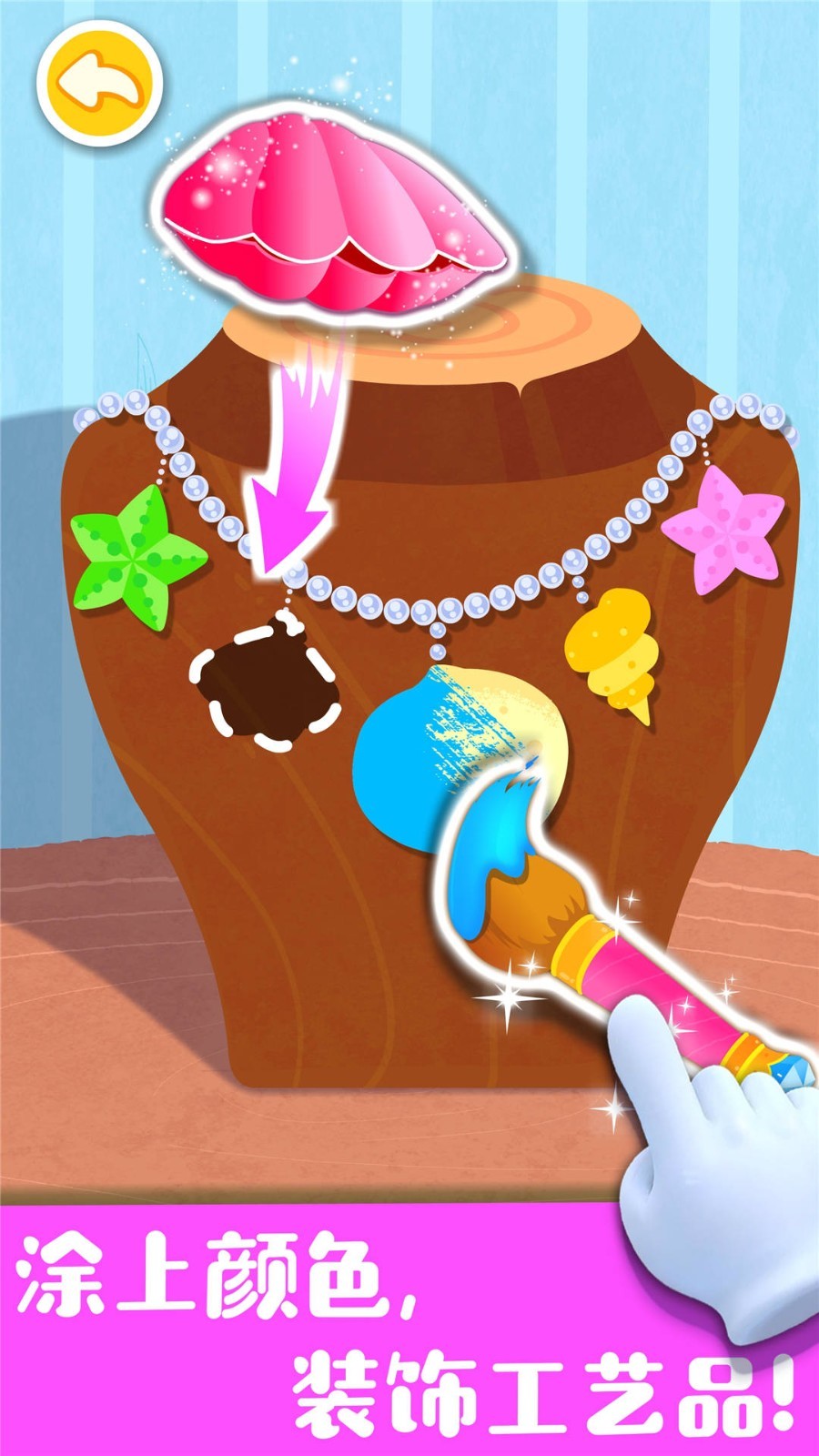 用调好的颜色,给手工艺品涂色,装饰工艺品吧!根据提示,给工艺品涂上正确的颜色~