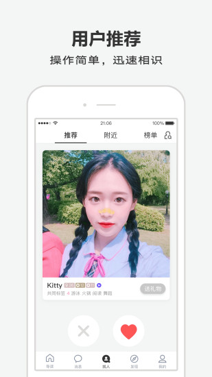 1、附近用户:有爱不躲藏,发现身边的帅哥美女闺蜜朋友怪咖小伙伴;