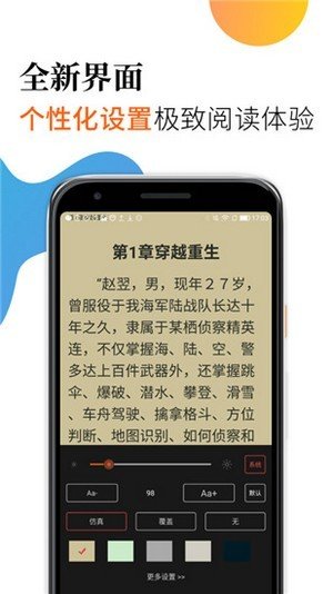 3、各种经典书籍和原创这里都有,还能自定义字体大小和背景阅读。