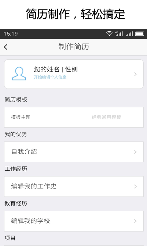 1、通过app您可以在线开始制作简历模板,用户就能填写基本的信息