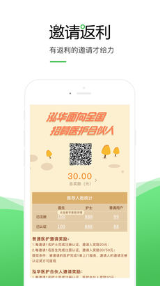 泓华医生软件是一款拥有全国连锁医院、诊所和家庭护理服务网络医疗健康软件,泓华医生提供安全有效而且温馨便捷全面医疗服务、家庭护理和健康保险服务。泓华致力于构建以客户为中心的医疗安全质量服务体系,提升中国医疗服务的客户满意度和医护人员的幸福感,让健康更简单。为国内外客户提供临床医疗、专家会诊、家庭护理、医护上门、私人医生、送药到家、医疗救援、海外医疗、健康保险等一站式全面医疗服务。同时,帮助医生护士自主执业,2万名全国名医专家,超过1万家医院诊所入驻泓华平台,帮助客户一站式解决问题。