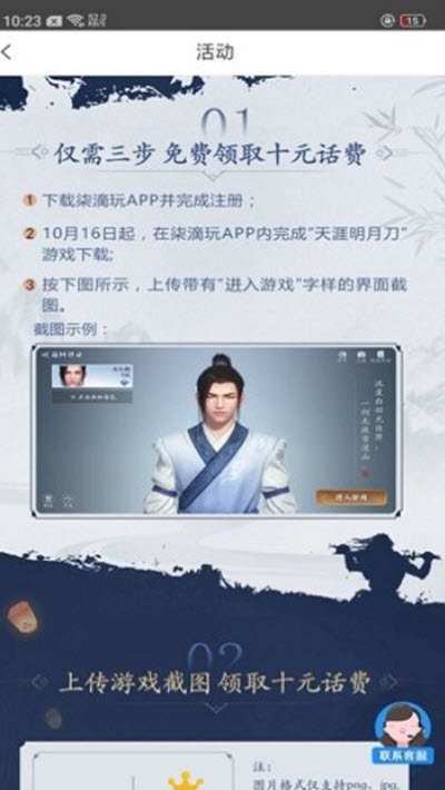 柒滴玩app是一款为你提供丰富游戏的天刀手游福利礼包领取软件,在这里完成注册下载天刀就能获得绝版游戏装备以及十元话费,同时还包括王者荣耀,和平精英等等游戏的众多福利都在这里,通过下载打开柒滴玩app,在柒滴玩app里下载天涯明月刀手游;并完成游戏注册,截图带有“进入游戏”字样的界面,上传到活动页面,就可以领取到10元手机话费,活动名额限量1万名先到先得,这个活动只能安卓手机参加。感兴趣的不要错过。