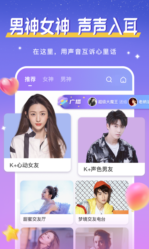 创建专属包厢,小姐姐来畅聊,不论是单独聊天,亲密陪伴;还是多人游戏,一起“真心话”or“吹牛”,聊你所想,听你所闻,玩你所好,今晚一起通宵。