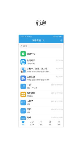 3、多种消息提醒栏,除了群聊和私聊消息外还设置了待办中心消息提醒以及协同助手提醒等;