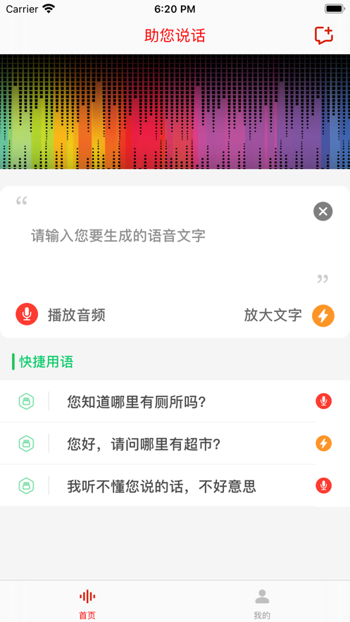 茶茶之声是一款可以通过手机来实现人与人之间的正常交流app,用户只需要在框内输入想要生成的语音文字即可自动生成语音,也可以设置快捷用于快速播放,你可以通过茶茶之声来进行聊天,有着大量的新鲜内容和搞笑段子,给人一种无声似有声的感觉,如果有一些话难以表达出来,在此即可来聊天,寻找自己感兴趣的话题一起来进行畅聊,轻松的生活圈,大家能够一起玩,感兴趣的用户不要错过了哦,可以带给您不一样的新体验。