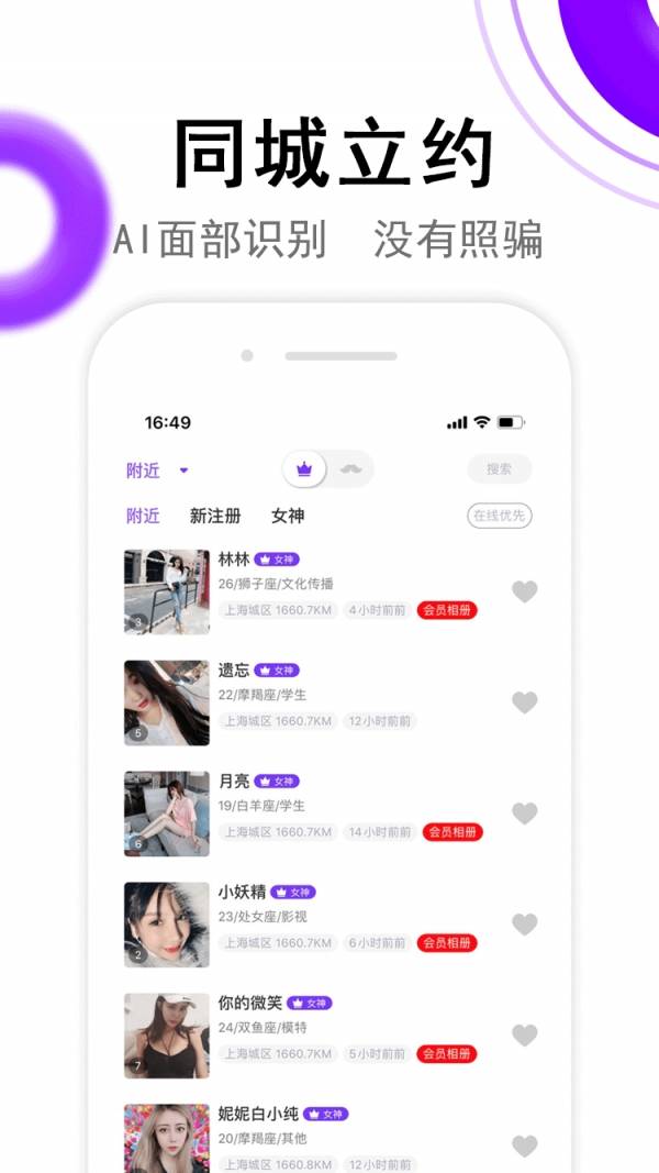 3、系统可以直接定位到大家目前所在的位置,然后为你推荐很多附近的同城用户。
