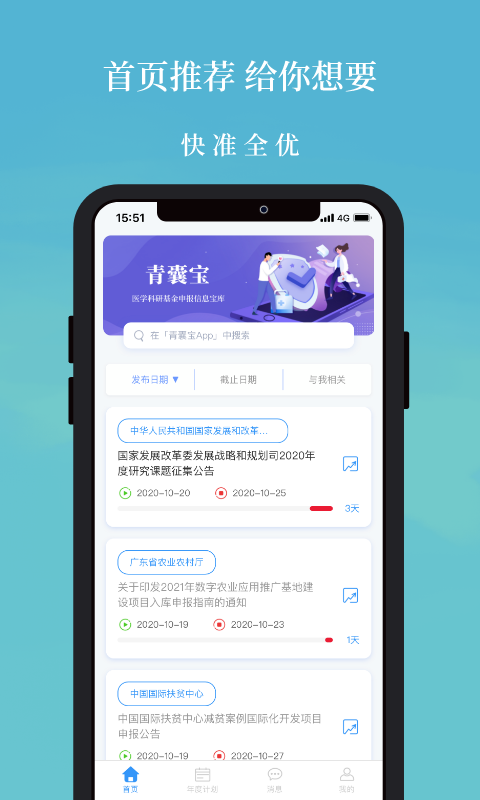 青囊宝app是可以轻松一键在线获取更多的优质课程的,随时可以进入自己需要的课程学习知识的。在线学习是非常方便的,整理的是丰富的知识而你若,可以帮助用户们更好的在线提升自己的,非常优质的课程学习平台。收录大量课题基金,内容丰富,一键获取大量优质课题,在线分析基金热词,获取最新基金数据,软件支持智能消息提醒、数据查询、计划查看等功能,更是有着超多的教学资料在等你来进行学习,更是可以根据你的学习情况来给你制造相对应的教学空间,让你更好的掌握每天的学习用量。需要的用户欢迎前来下载体验。