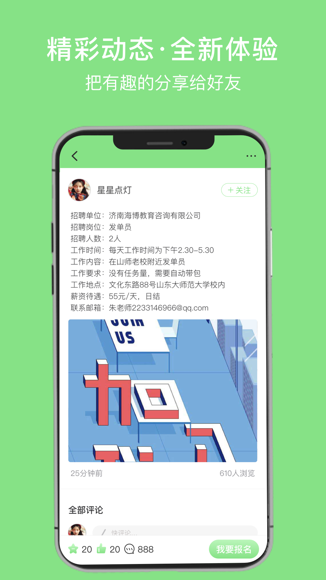 4.实时发送兼职短消息,与企业快速沟通并有效地建立联系。