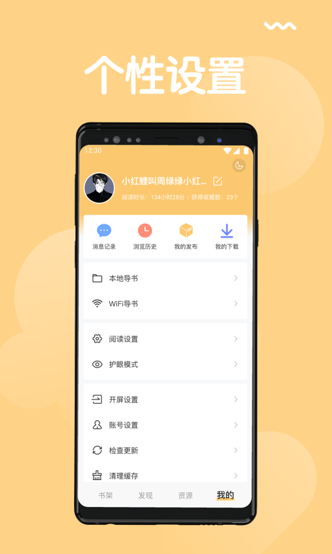 护眼模式:字体、亮度、背景统统可以设置,更贴心。