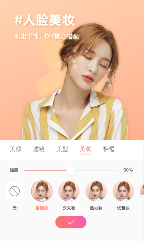 1、可自由调节妆容的强度,滑动数轴就能调节;