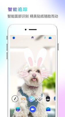 智能追踪,可对面部进行智能识别,贴纸能够跟着脸进行变动;