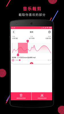 1、音频剪辑:可以对各类型的音频剪切制作,提取你中意的音频。