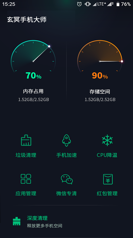玄冥手机大师app拥有自动的垃圾检测技术,可以让您快速的知道手机垃圾数据,通过app就能对垃圾进行彻底清理了;各种功能板块绝对可以带给您最优质的使用体验,拥有专业手机内存垃圾清理、加速专家,具备垃圾清理、广告拦截、CPU降温、手机加速等多种功能,可以帮助用户对手机进行彻底的清理,让手机可以达到最佳的运行状态,用户才能轻松的使用手机;还提供微信专清功能,彻底清除手机内的各种垃圾文件;各种功能板块绝对可以带给您最优质的使用体验,需要的用户快来下载玄冥手机大师使用吧!