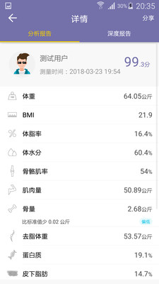 1、能够为用户提供完善的身体成分图表和健康分析报告,让你可以更好的进行了解;