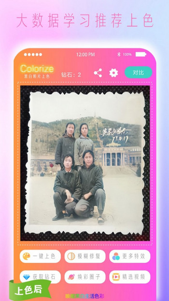1.上色前后照片形成强烈对比,上色功能不会改变照片内容;