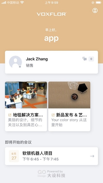 VOXFLOR软件有诸多地毯设计领域的设计机构、供应商、客户在使用我们的服务,让地毯设计商务流程更加高效、便捷、数字化。设计师在与客户的文档交互过程中,在移动互联网上树立形象、拓展经营渠道、扩大对外交流、全方位展示产品、新品推广、拓展客户、建立生意圈的好帮手,软件通过从刚开始物料选择上到款式定制再到优质产品都有遵守细致的标准,让我们享受更高端的定制生活,就从地毯开始吧!快来麦氪派下载体验吧!