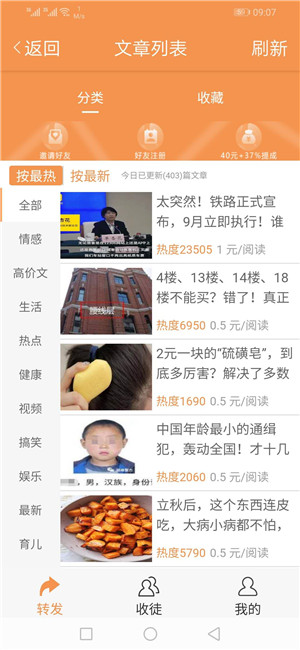 红掌网app为用户提供热门新闻,医疗保健,食品等信息,想要赚钱的用户必须转发受欢迎且点击率高的文章,以便与朋友,朋友圈或微博分享。是个用于在线赚钱阅读新闻文章的平台软件。平台上有许多高质量的文章,因此用户可以从这些文章的内容中学习如何改善阅读习惯,操作简单,真实提现,快速到账,但是需要注意的是,你做的任务必须要是有效转发,不可以秒删或者是屏蔽朋友圈的。快来麦氪派下载体验吧!