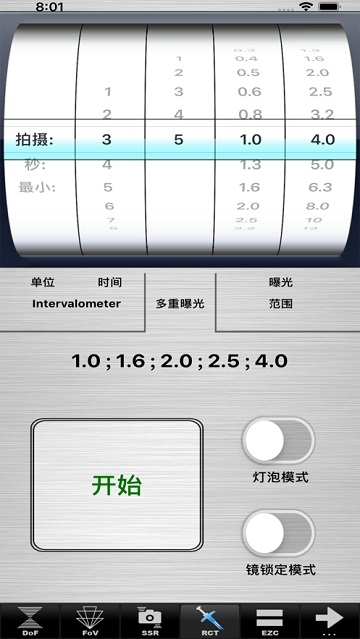 3. 自动保存上一次的参数设定,无需再次设定,并标识出近景深和远景深(无穷远)