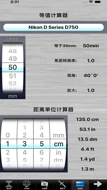 3、提供距离单位换算计算器,焦距转换率传感计算器和放大率计算器。