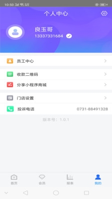 我的界面可以设置员工并对员工进行授权,分享的功能。