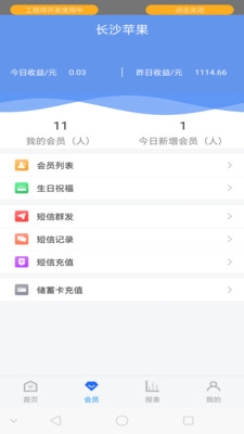 报表界面可以查看整个门店的销售数据和新增会员的数据。